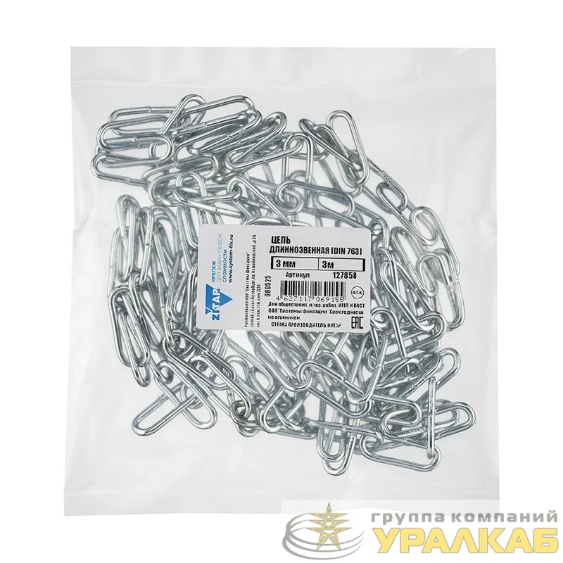 Цепь длиннозвенная 3мм DIN 763 (3м) Tech-Krep/Zitar 127858