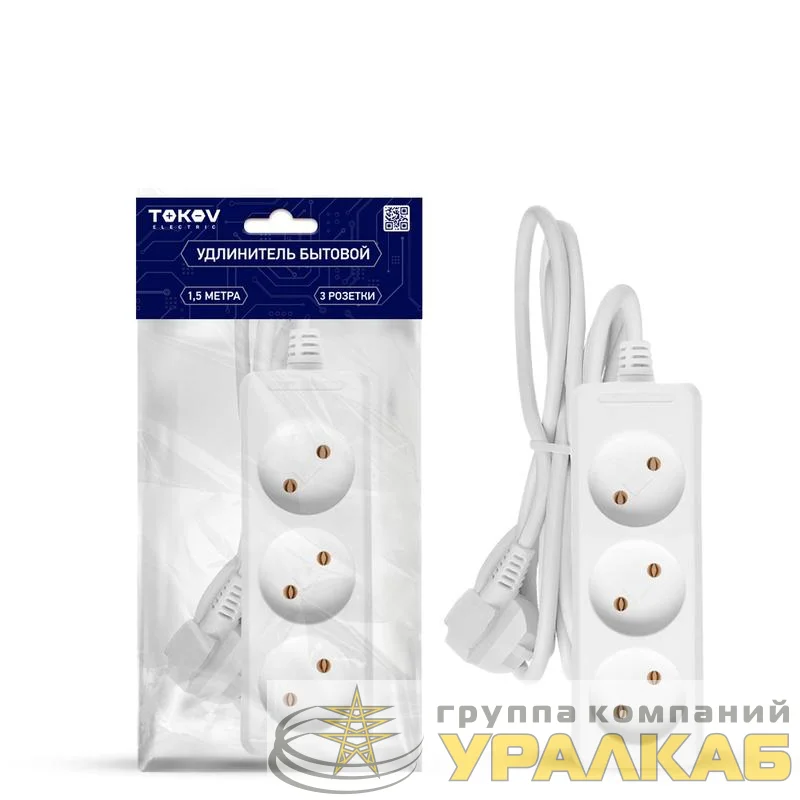 Удлинитель 3х1.5м без заземл. 10А 2х0.75 TOKOV ELECTRIC TKE-C01-BU3-1.5-075