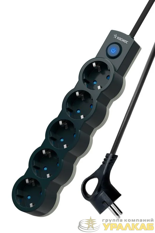 YKsm3m-5g-Z-V10A-B - Удлинитель 5х3м с заземл. 10А IP20 2200Вт 220В защ. шторки ПВС 3х1 с выкл. черн. КОСМОС