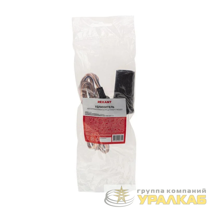 Удлинитель автоприкуривателя 10А IP20 штекер-гнездо 1.5м Rexant 16-0218