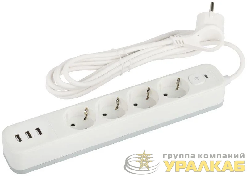 Б0059567 - Удлинитель с сетевым фильтром 4х1.5м с заземл. 10А USF-4es-1.5m-3xUSBA-W +3xUSBA 3.1A с выкл. с базов. защитой Эра