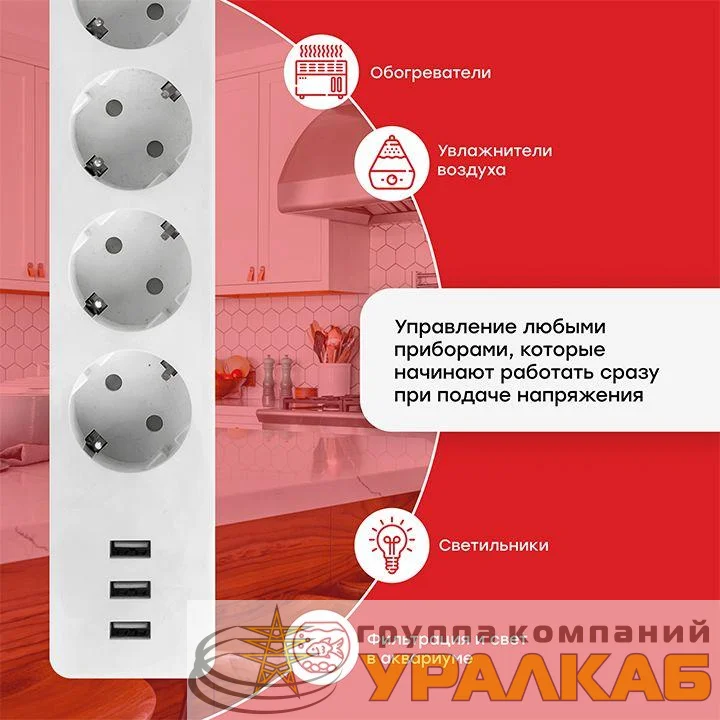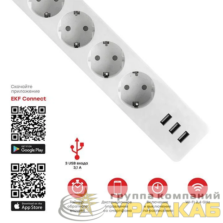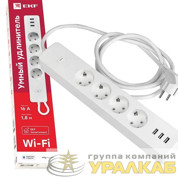 RCE-1-WF - Удлинитель умный 4х1.8м 16А IP20 Connect Wi-Fi 3хUSB с выкл. с управлением по Wi-Fi PROxima EKF
