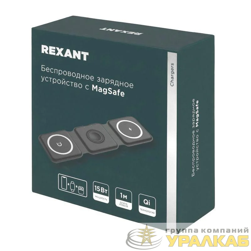 Устройство зарядное беспроводное 15Вт с MagSafe 3в1 Qi черн. Rexant 18-7088
