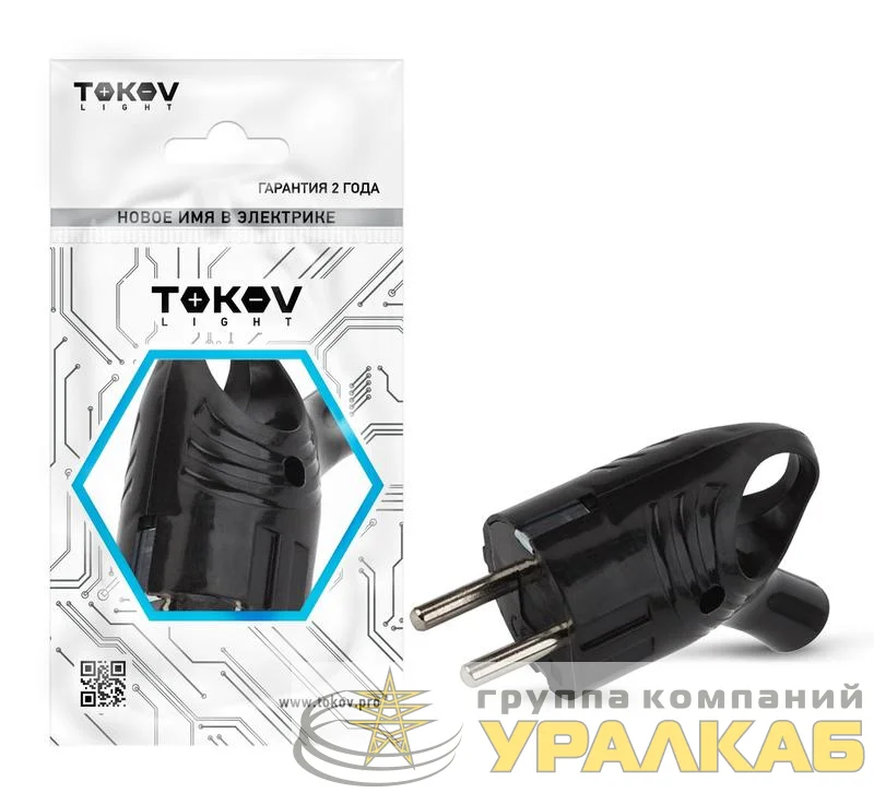 Вилка электрическая с заземл. с кольцом (ушком) 16А 250В IP20 черн. TOKOV ELECTRIC TKL-PLUZR-C05