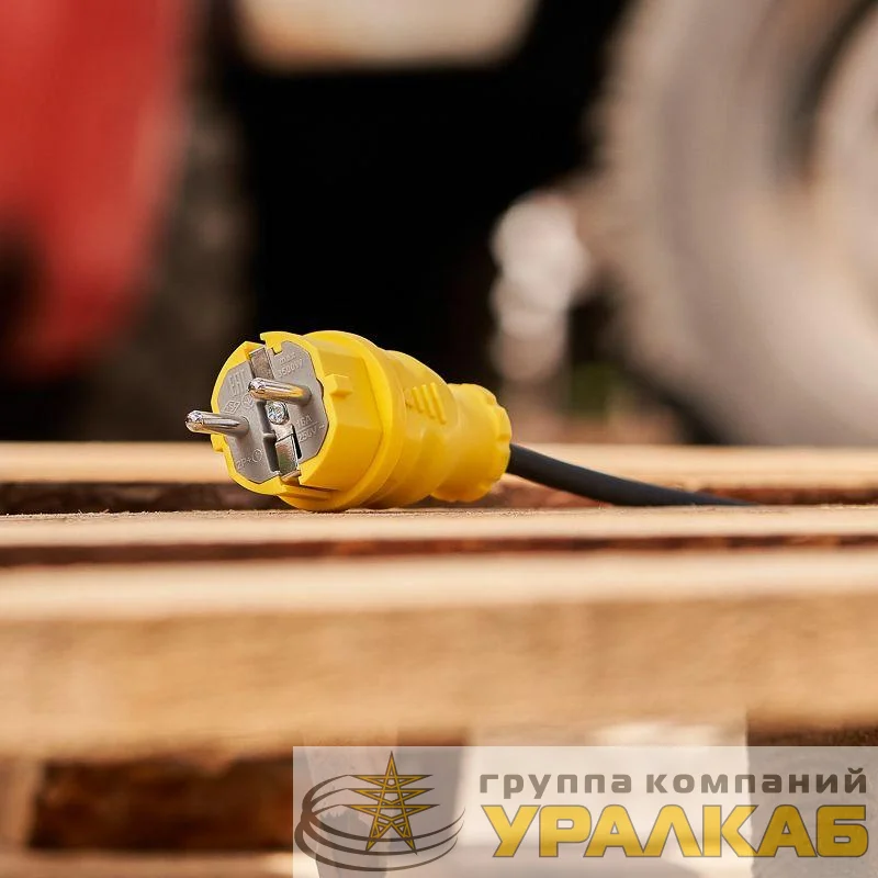 111-014 - Вилка прямая влагозащищенная с заземл. 16А. IP44 каучук желт. Rexant