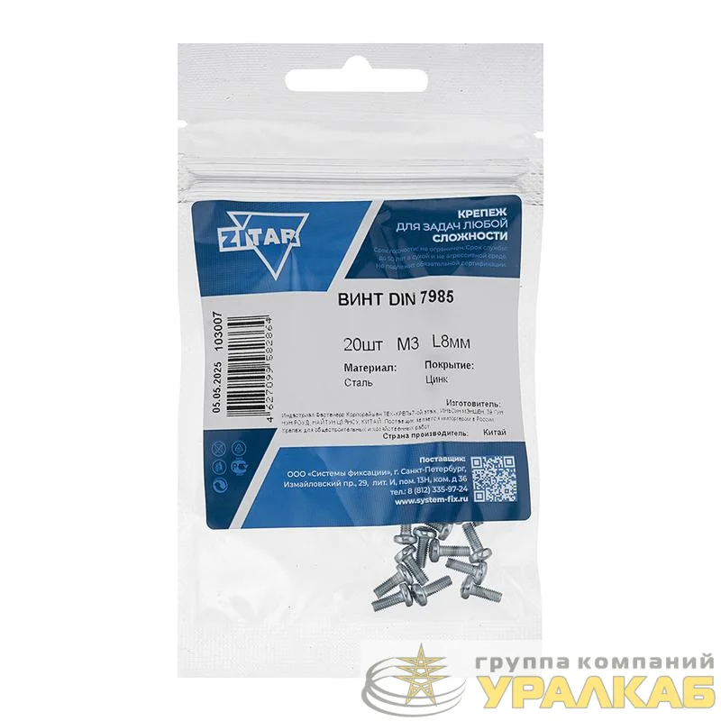 Винт с полукруглой головкой М3х8 DIN 7985 оцинк. (уп.20шт) Tech-Krep/Zitar 103007