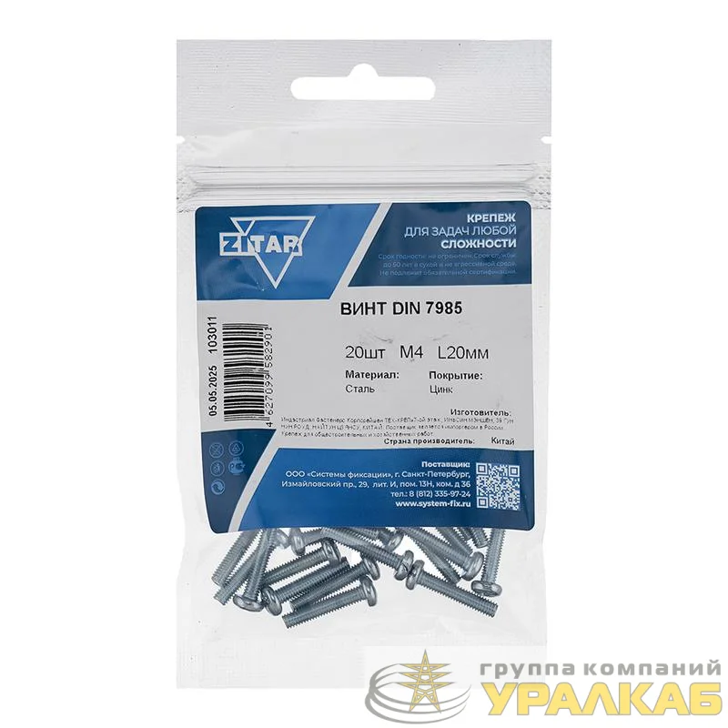 Винт с полукруглой головкой М4х20 DIN 7985 оцинк. (уп.20шт) Tech-Krep/Zitar 103011