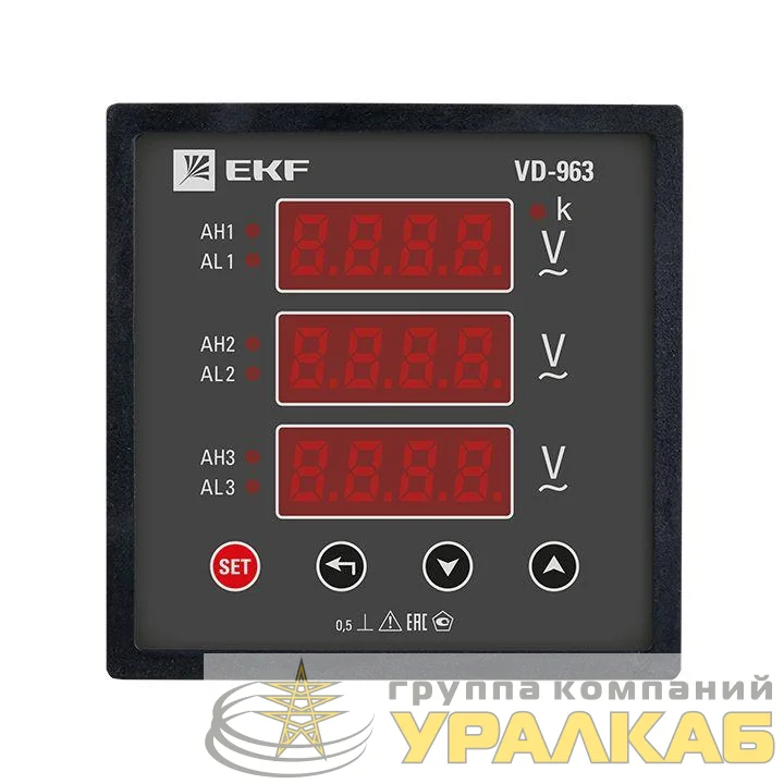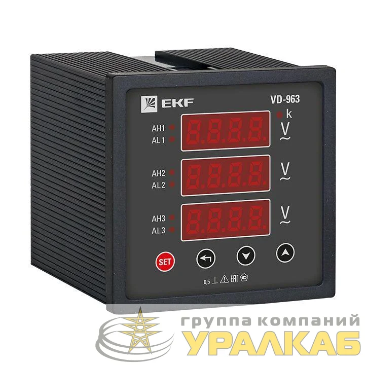 Вольтметр цифровой VD-963 на панель 96х96 трехфазный EKF vd-963