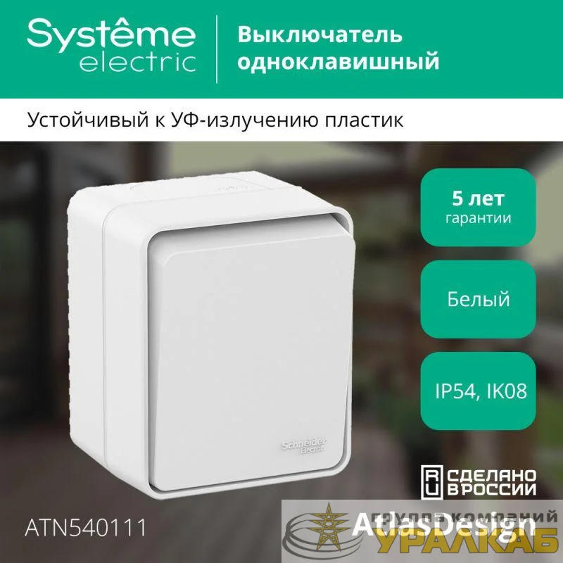 ATN540111 - Выключатель 1-кл. ОП AtlasDesign PROFI IP54 10AX бел. SE