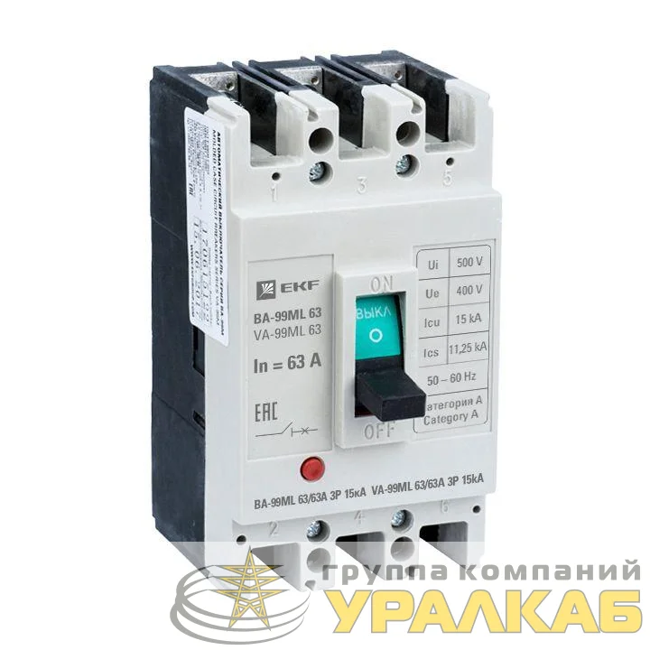 mccb99-63-63mi - Выключатель автоматический 3п 63/63А 15кА ВА-99МL Basic EKF