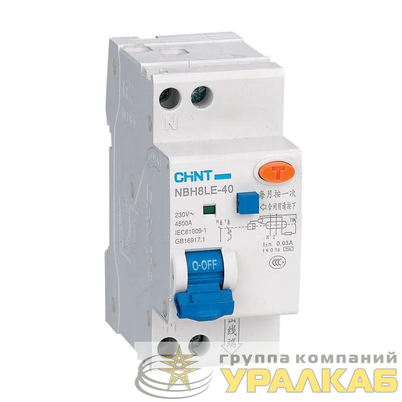Выключатель автоматический дифференциального тока 1п+N C 32А 30мА 4.5кА NBH8LE-40 (R) CHINT 206065