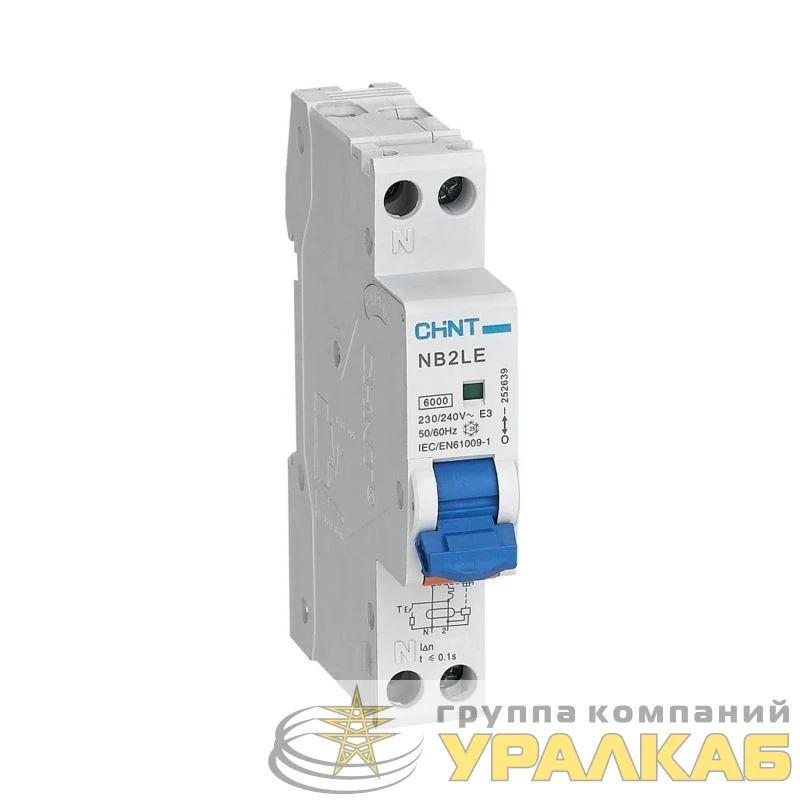 Выключатель автоматический дифференциального тока 1п+N C 6А 30мА 1мод. электрон. тип AC 6кА NB2LE (R) CHINT 689000