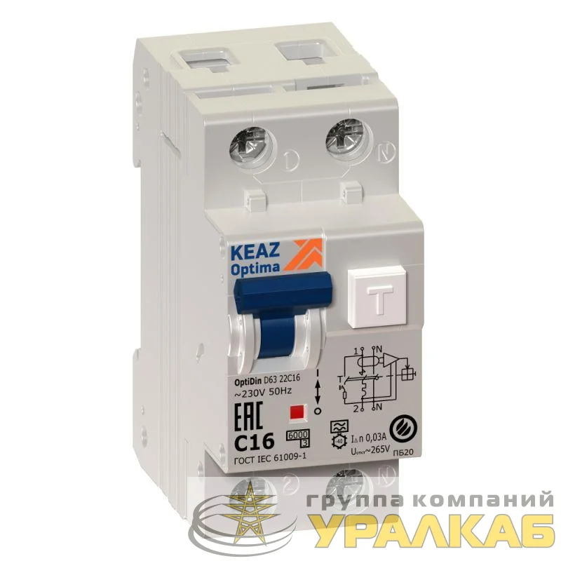 Выключатель автоматический дифференциального тока 2п (1P+N) C 20А 30мА тип A 6кА OptiDin D63 УХЛ4 2мод. КЭАЗ 103508
