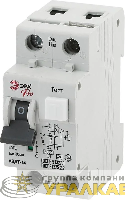 Выключатель автоматический дифференциального тока 2п (1P+N) C 25А 30мА тип A АВДТ 64 Pro NO-901-85 Эра Б0031835