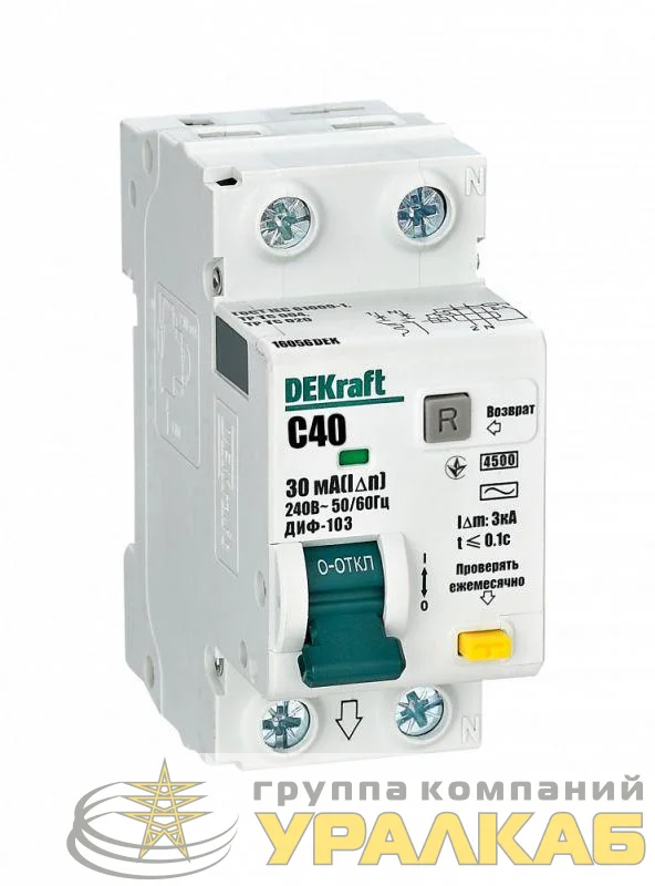 Выключатель автоматический дифференциального тока 2п (1P+N) C 40А 30мА тип AC 4.5кА ДИФ-103 DEKraft 16056DEK