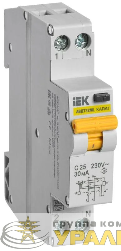 Выключатель автоматический дифференциального тока C 25А 30мА тип A АВДТ32ML KARAT IEK MVD12-1-025-C-030-A