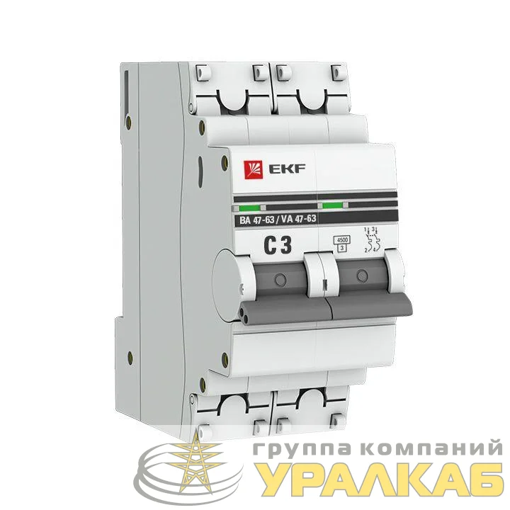 Выключатель автоматический модульный 2п C 3А 4.5кА ВА 47-63 PROxima EKF mcb4763-2-03C-pro