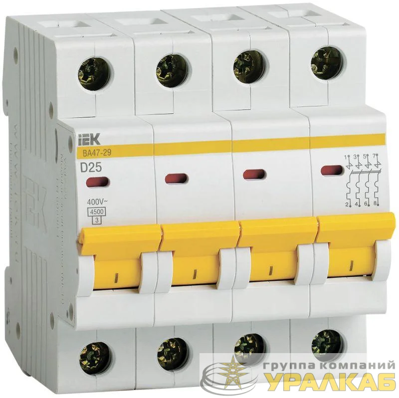 Выключатель автоматический модульный 4п D 25А 4.5кА ВА47-29 KARAT IEK MVA20-4-025-D