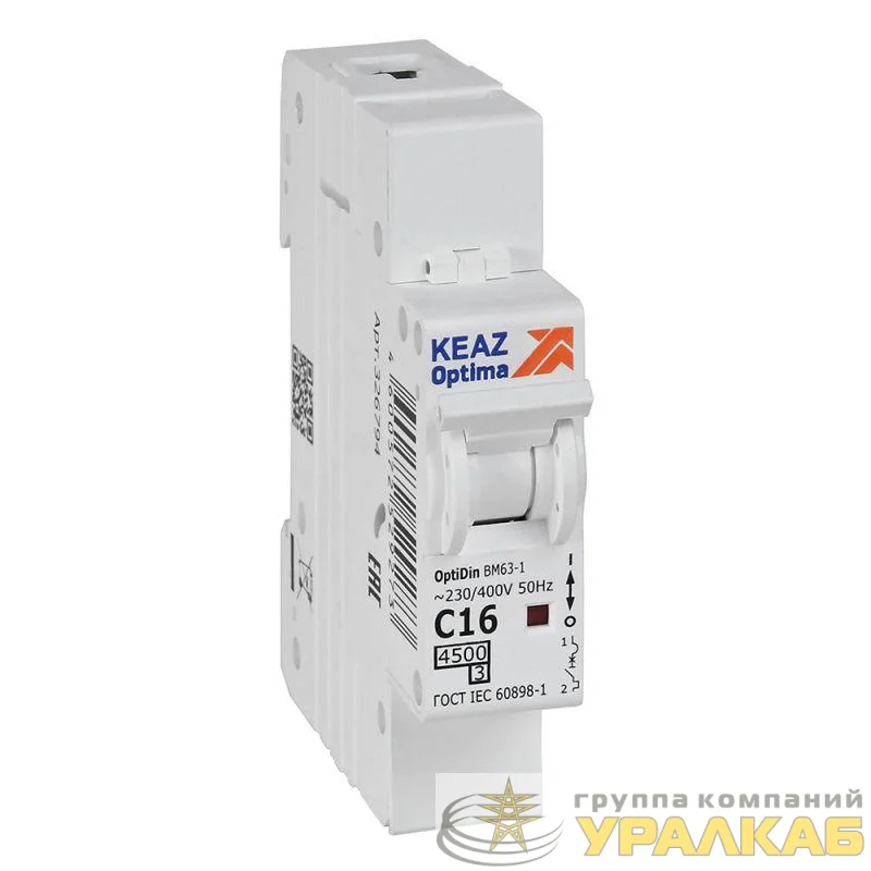 326794 - Выключатель автоматический модульный 1п C 16А 4.5кА OptiDin BM63-1C16-4.5-УХЛ3 КЭАЗ
