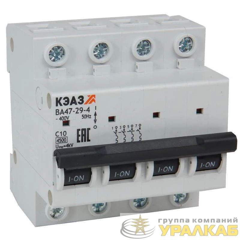 318334 - Выключатель автоматический модульный 4п C 25А 4.5кА ВА47-29-4C25-УХЛ3 КЭАЗ