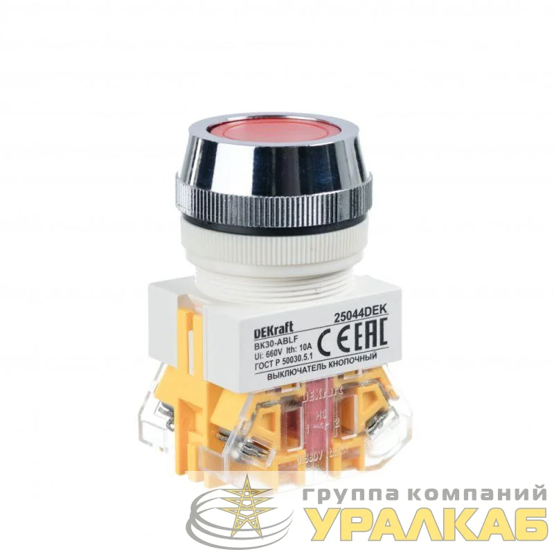 25044DEK - Выключатель кнопочный ABLF ВК-30 d30мм 220В красн. DEKraft