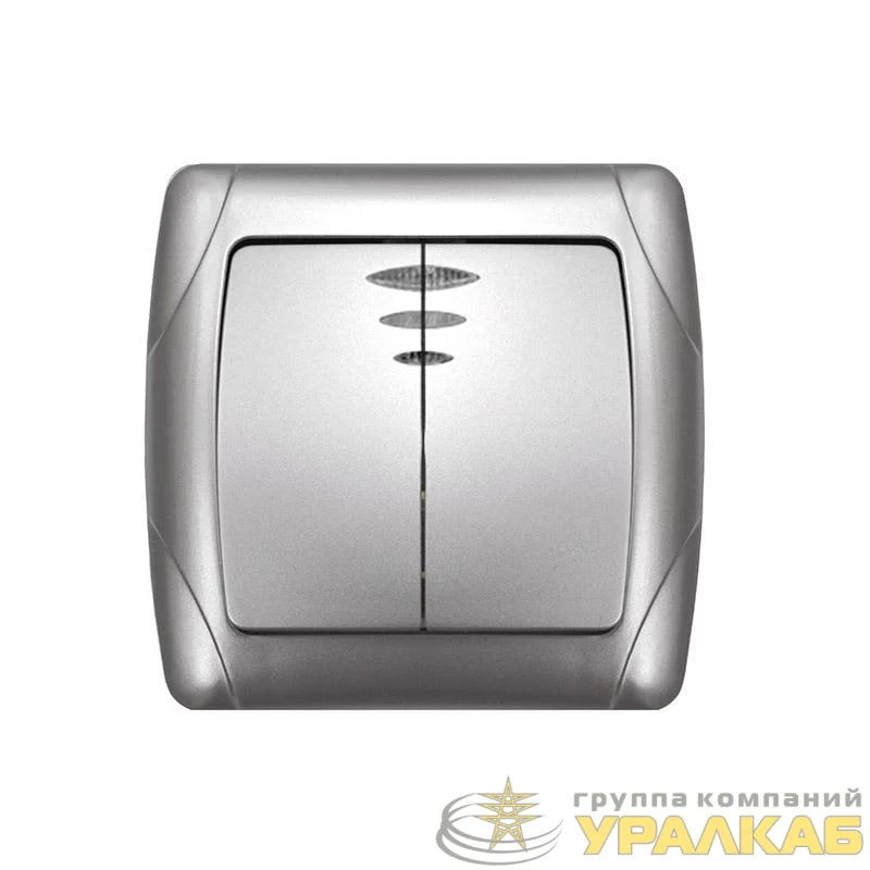 М0123-S - Выключатель 2-кл. СП Маргарита 10А IP20 с подсветкой серебр. UNIVersal