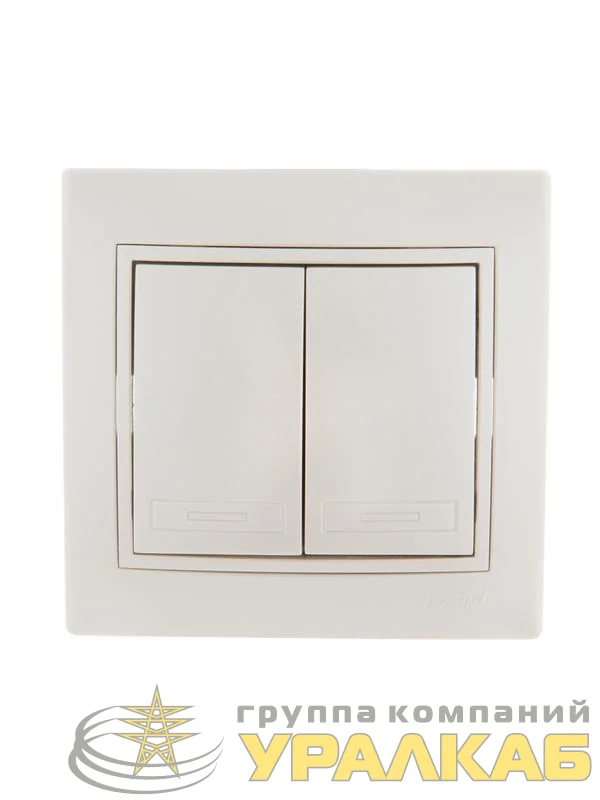 Выключатель 2-клавишный это двухпозиционный коммутационный аппарат с замыкающими (нормально-разомкнутыми) контактами, предназначенный для работы в сетях с напряжением до 1000 вольт, не предназначенный для отключения токов короткого замыкания, без специальных устройств дугогашения, местного управления, с ручным приводом.