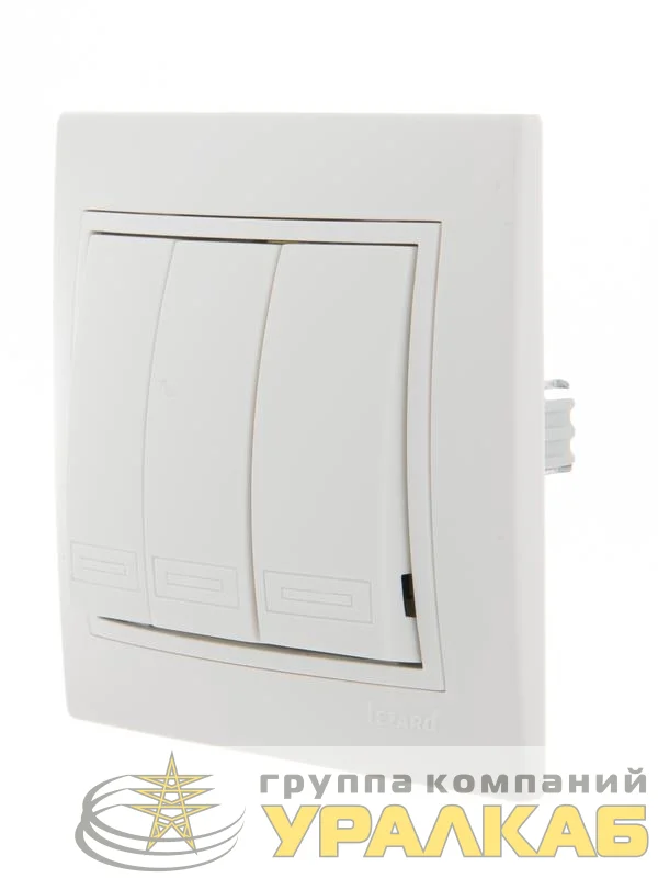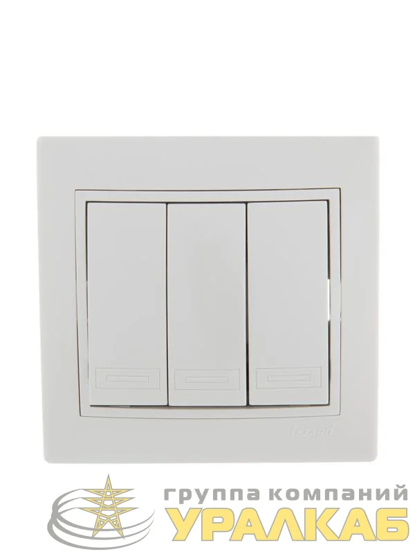 Выключатель 3-кл. СП Mira 10А IP20 с бел.вставкой бел. LEZARD 701-0202-109