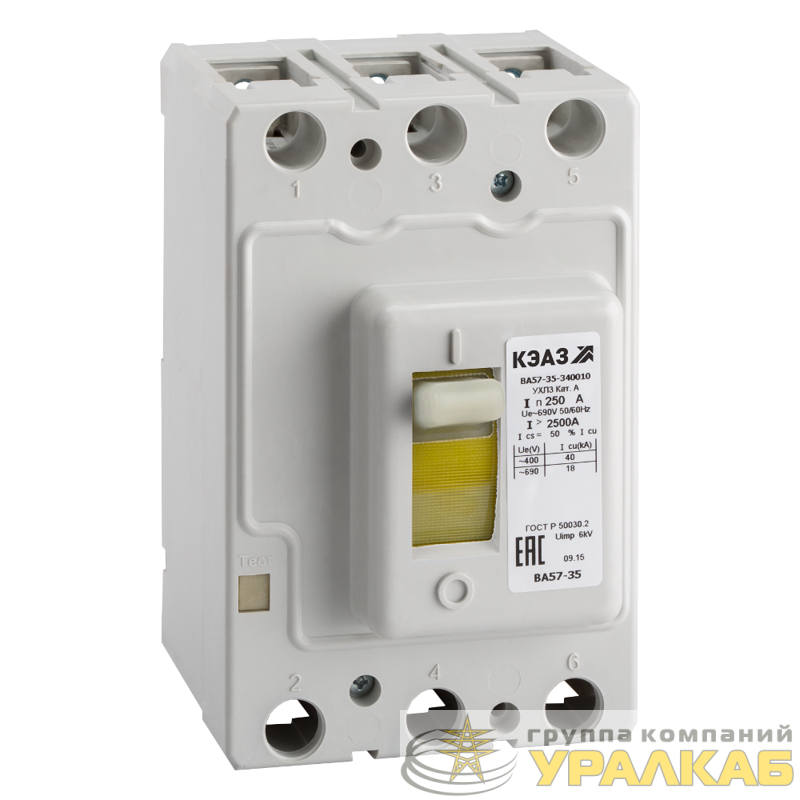 108600 - Выключатель автоматический 3п 250А 2500Im 40кА ВА57-35-340010 УХЛ3 690В AC КЭАЗ