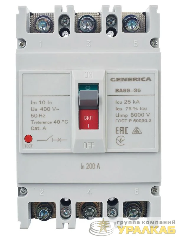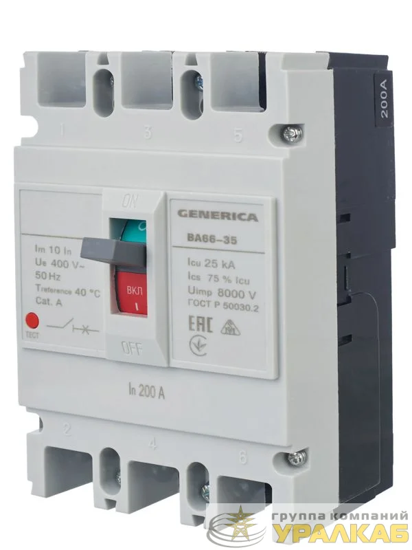 Выключатель автоматический 3п 200А 25кА ВА66-35 GENERICA IEK SAV30-3-0200-G