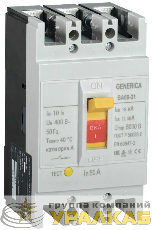 SAV10-3-0080-G - Выключатель автоматический 3п 80А 18кА ВА66-31 GENERICA