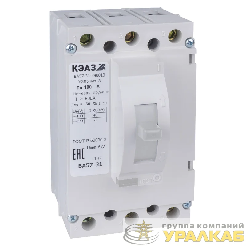 108439 - Выключатель автоматический 3п 50А 800Im 40кА ВА57-31-340010 УХЛ3 690В AC КЭАЗ