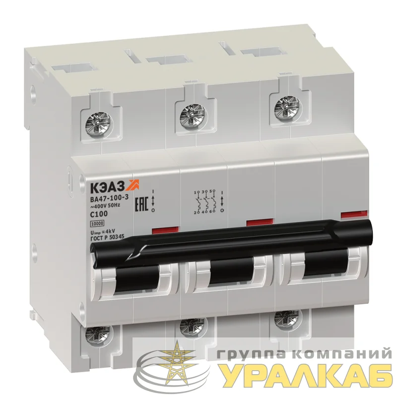 141630 - Выключатель автоматический модульный 3п C 100А 10кА ВА47-100-3С100-УХЛ3 КЭАЗ