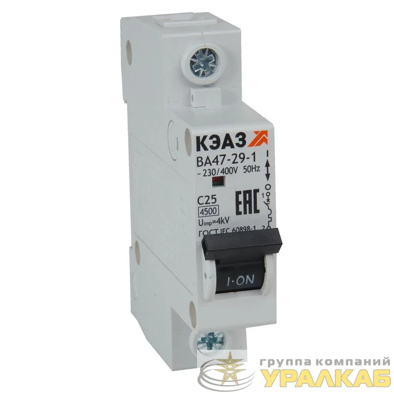 318197 - Выключатель автоматический модульный 1п C 1А 4.5кА ВА47-29-1C1-УХЛ3 КЭАЗ