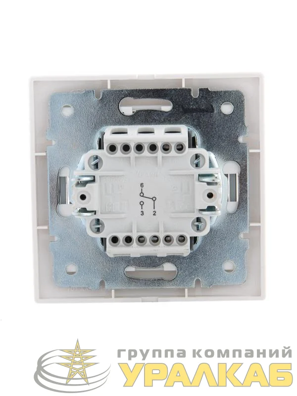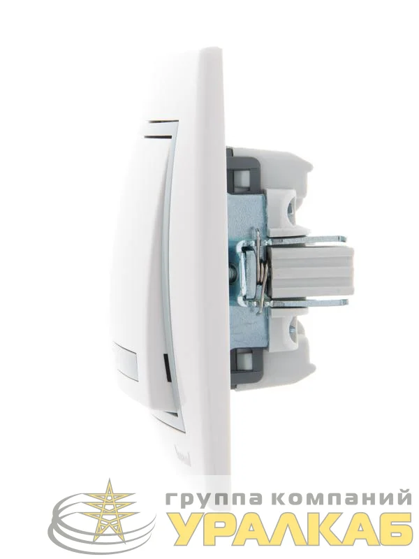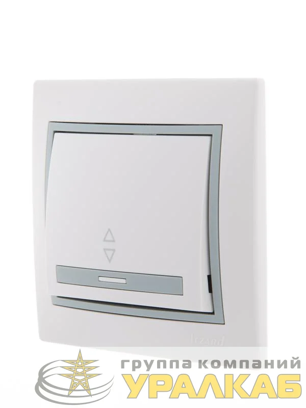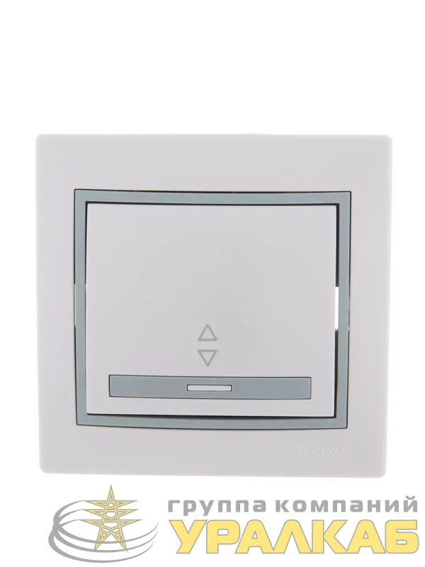 Переключатель проходной 1-кл. СП Mira 10А с сер. вставкой бел. LEZARD 701-0215-105