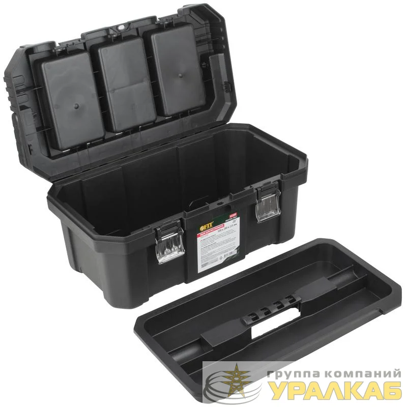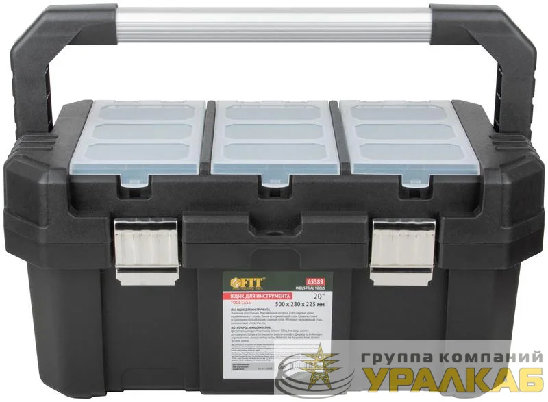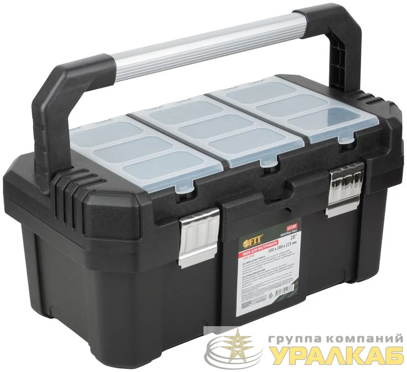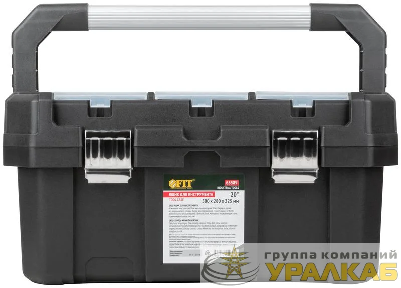 65589 - Ящик для инструмента пластиковый 20дюйм 500х280х225мм металл. замки. алюм. ручка FIT