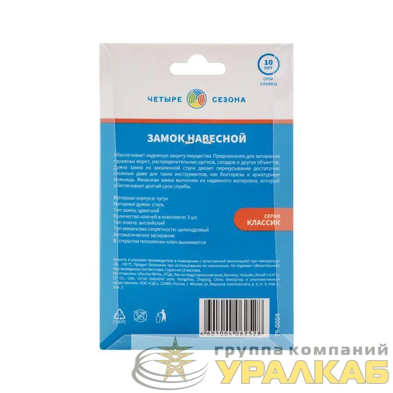 79-0004 - Замок навесной "Чугун" 40мм ЧЕТЫРЕ СЕЗОНА
