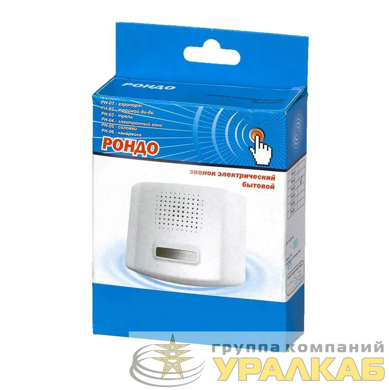Звонок проводной Рондо электрон. гонг 220В 80-90дБА бел. Тритон РН-04