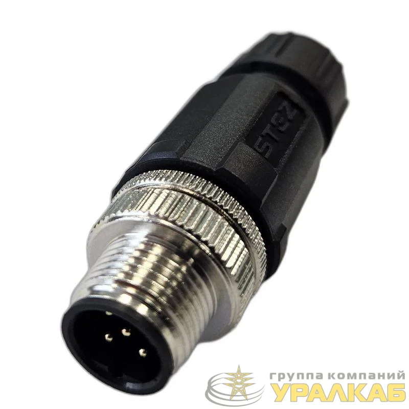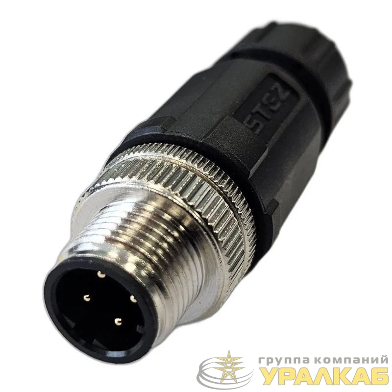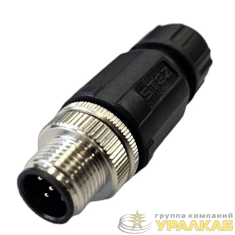 Разъем М12 4D штыревой пайка пластик. прямой резьба PG7 каб. часть СЦМ120022-04D СТЭЗ