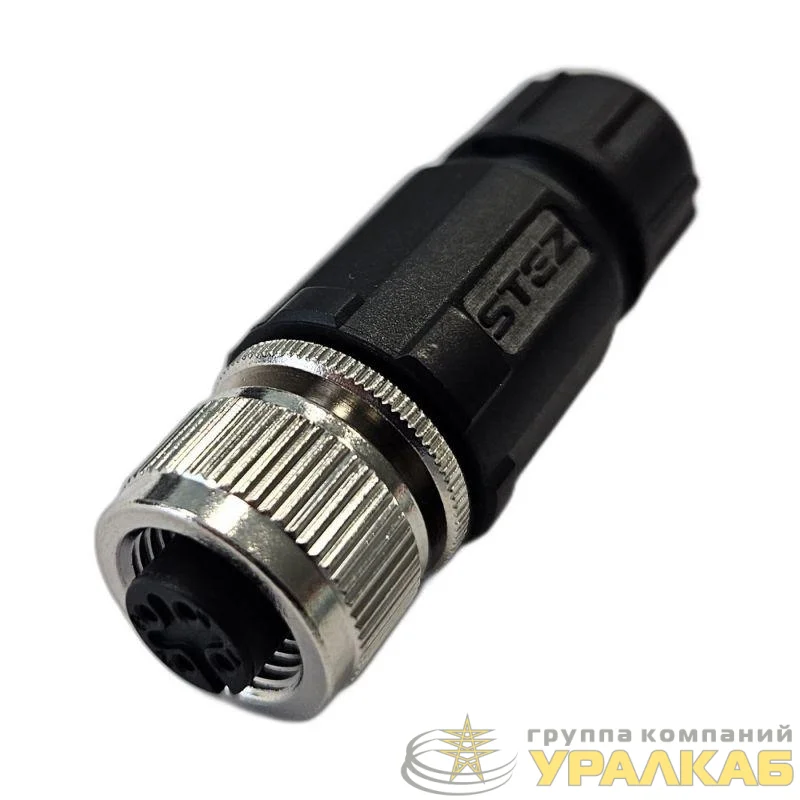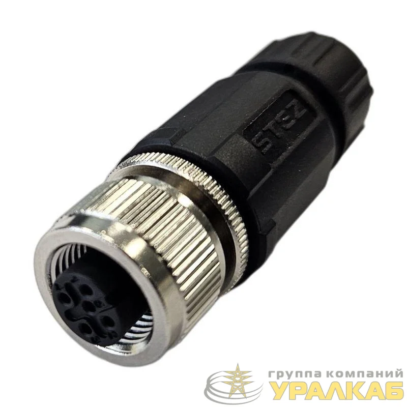 Разъем М12 4D гнездовой пайка пластик. прямой резьба PG7 каб. часть СЦМ120021-04D СТЭЗ