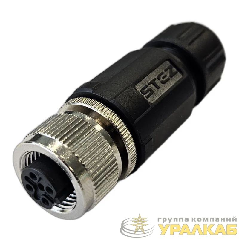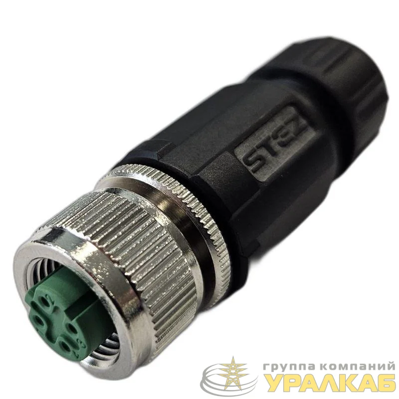 Разъем М12 4A гнездовой пайка пластик. прямой резьба PG7 каб. часть СЦМ120021-04A СТЭЗ
