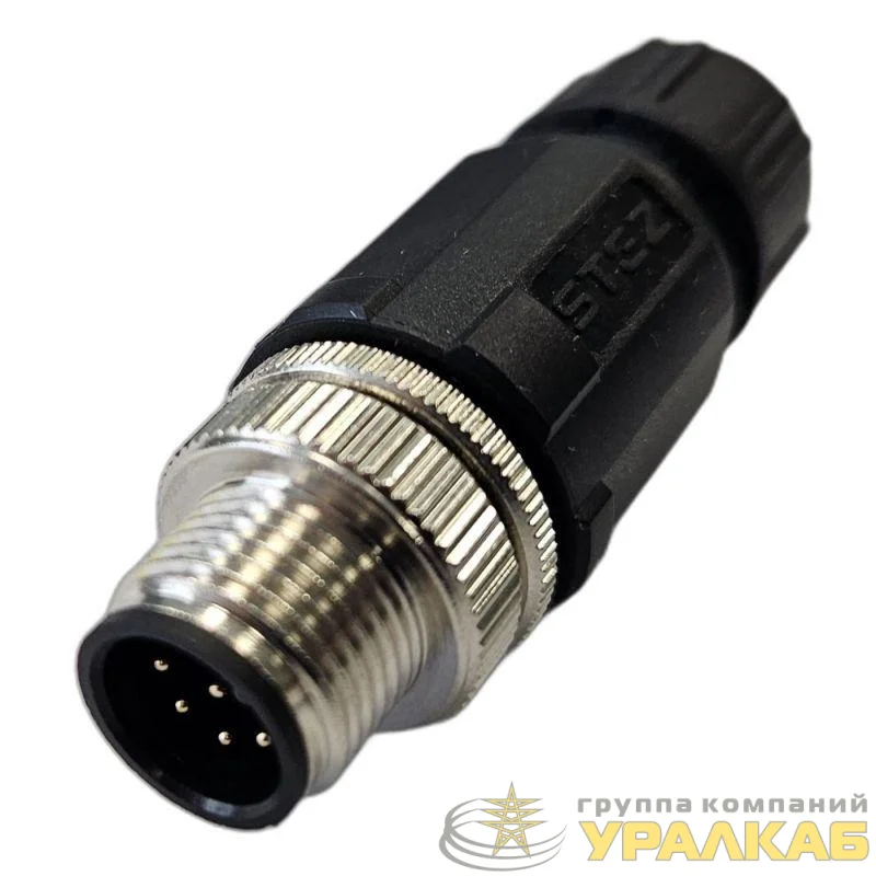 Разъем М12 8A штыревой пайка пластик. прямой резьба PG7 каб. часть СЦМ120022-08A СТЭЗ